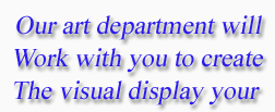 Color and graphics communicate more effectively. We have a professional graphic design department to help with everything from setting up the project to complete layout and design. All projects include up to 1 free hour of graphics service, but we offer additional assistance for $25.00 per hour. Ordering is as easy as 4 simple steps!